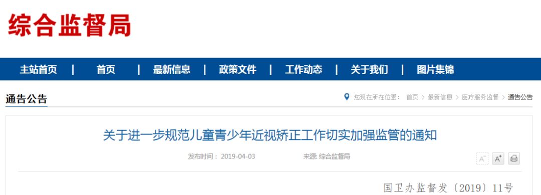 关于进一步规范儿童青少年近视矫正工作切实加强监管的通知